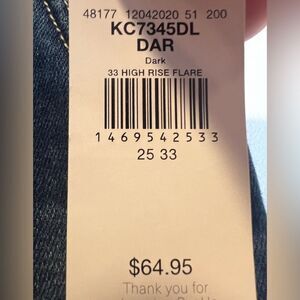 NEW KanCan Jeans Sian Button Fly High Rise Distressed Raw Hem Flare Dark Wash 25