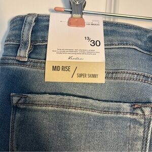 NEW Kancan Stone Wash Distressed Denim Mid Rise Super Skinny Jeans Size 13/30