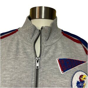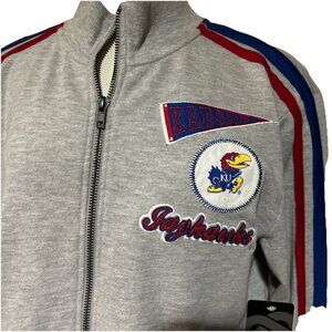 This stylish Kansas Jayhawks KU track set includes a zip sweatshirt jacket and skirt, perfect for fans. Ideal for casual outings or game days, it offers comfort and team spirit. Available in women's medium and small sizes.
