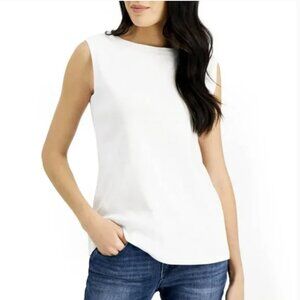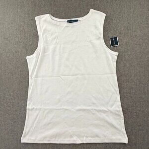 NEW! Karen Scott Basic White Sleeveless T-Shirt Solid White Large 100% Cotton
