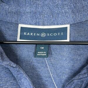 NEW Karen Scott Button Down Shirt Women's Plus Size 1X Blue Long Sleeve Casual