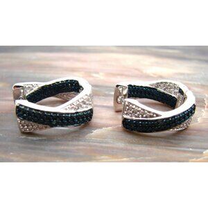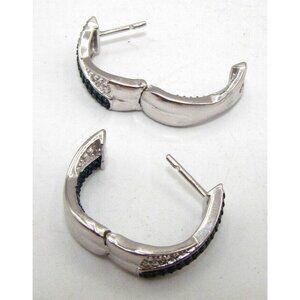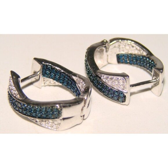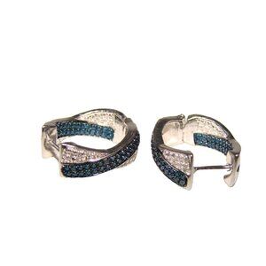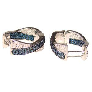 NEW Karis STS Womens Hoop Earrings Blue and Clear Rhinestones Silver Tone Pierce