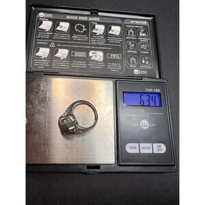 Karis brand labradorite stone prong set in a two toned setting. Plated with 18k yellow gold and platinum over a brass base. Measures a size 9. Made in India.