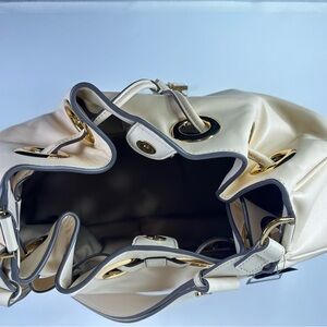 NEW Karl Lagerfeld Cream Desiree Leather Shoulder Crossbody Drawstring Bag