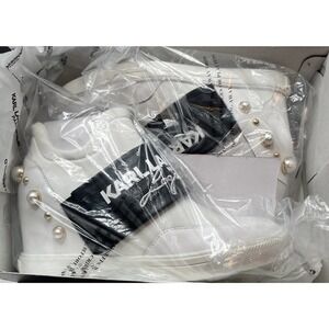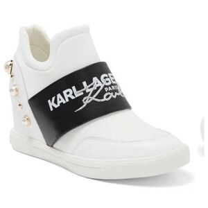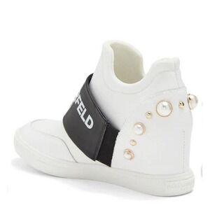 NEW Karl Lagerfeld Paris Charsi High Heel Sneakers Size 8.5M Women’s White Pearl
