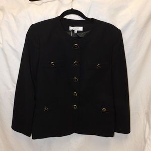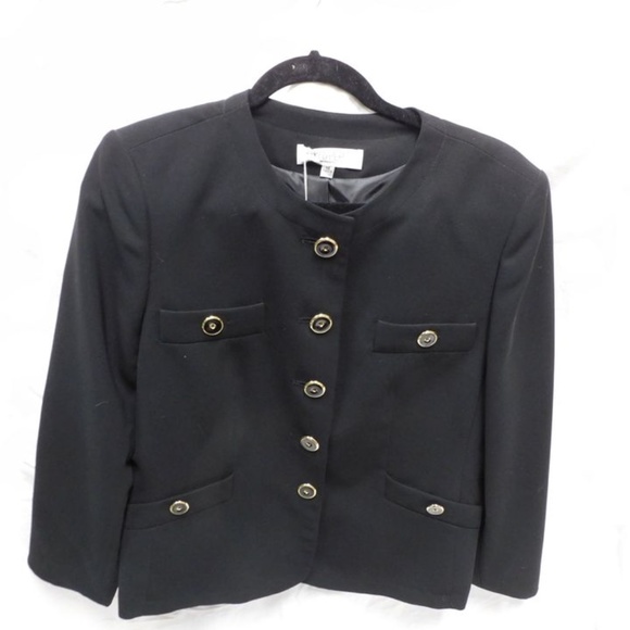 NEW Kasper Lined Button-Down Peacoat Jacket (Size 14 W) Black with Gold Buttons