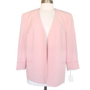 NEW Kasper Pastel Pink Collarless 3/4 Sleeve Open Front Jacket 18 Blazer Spring