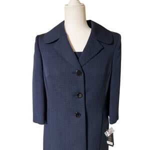 NEW Kasper Women's Crepe Topper Jacket & Sheath Sleeveless Dress Suit Blue 12P