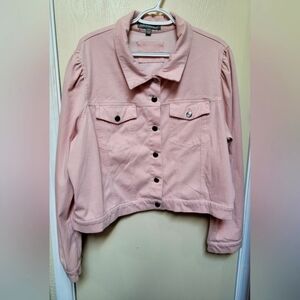 Elevate your style with this chic pink jacket. Perfect for layering and adding a pop of color to any outfit. Stretchy and soft, pleated small puff at top of sleeve