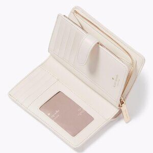 NEW Kate Spade Carey Quilted Medium Compact Bifold Wallet Parchment White