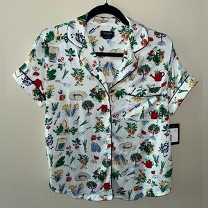 NEW Kate Spade Gardening Print Pajamas Size Small Short Sleeves Cropped Bottoms