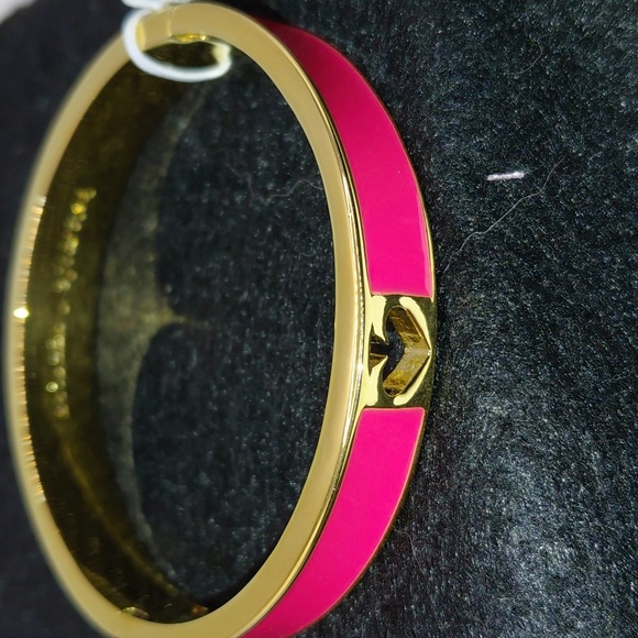 NWT KS Coral enamel "Hole Punch" hinged 10mm bangle bracelet! Last photo best represents the color. It is more orangish than pink. Please review photos for condition, features and measurements. Questions? Leave a comment below!