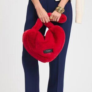 NEW Kate Spade Luver Huge Soft Faux Fur Heart KJ902 Cherry Rouge Shoulder Tote