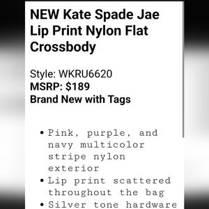 NEW Kate Spade New York Jae Pink Stripe Crossbody Bag Flat Purse