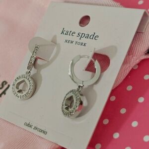 NEW Kate Spade Spot The Spade Pave Huggies Drop Dange Earrings Silver Clear