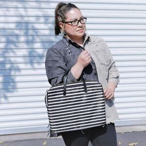 NEW Kate Spade Stripe Computer Laptop Commuter Bag Black White