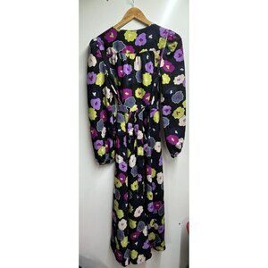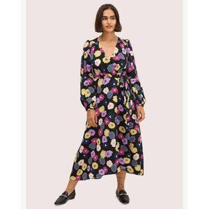 NEW Kate Spade Winter Garden Midi in Black Floral Print Wrap Dress Size 6