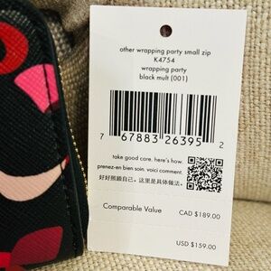 NEW Kate Spade Wrapping Party Small Zip Around Card Wallet K4754 Black
