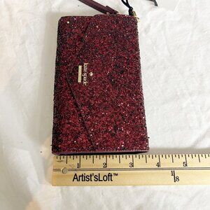 NEW Kate Spade iPhone Wristlet Deep Plum Red Glitter Wallet Card Slots Envelope