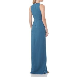 NEW Kay Unger Megan Sleeveless Draped Detail Column Gown in Baltic Blue