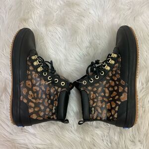 Keds woman’s leopard print Scout boot II water resistant canvas rain lace up sneaker boot in size 6