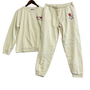 NEW Keith Haring Women's M Graphic Cream Sweatshirt & Jogger Lounge Set