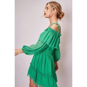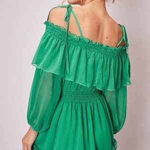 NEW Kelly Green Off Shoulder Ruffle Romantic Dress