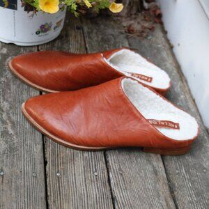 NEW Kelsi Dagger Sail Cognac Leather w Faux Shearling Fur Lining Flat Mule Sz 6