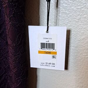 NEW Kelvin Clein Purple Lace Sleeve Sheath Dress Plus Size 16W Evening