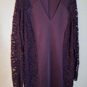NEW Kelvin Clein Purple Lace Sleeve Sheath Dress Plus Size 16W