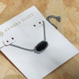 NEW Kendra Scott Elisa Black Opaque Glass Necklace Silver
