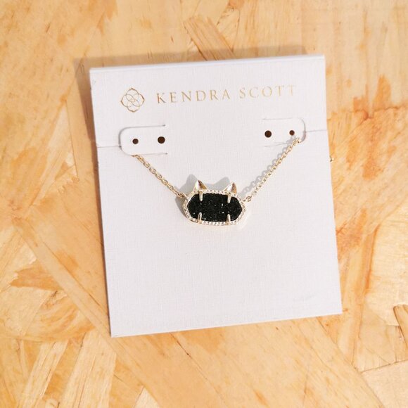 NEW Kendra Scott Elisa Cat Black Drusy Necklace Gold