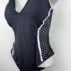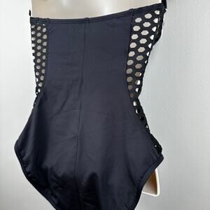 NEW Kenneth Cole New York One Piece Swimsuit Perforated Cutout Detail Black Small