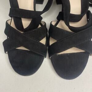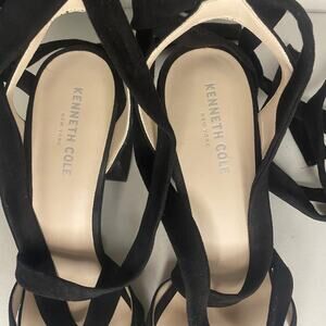 NEW Kenneth Cole Victoria Dressy Open Toe Strappy Black Suede Heel Sandals 10