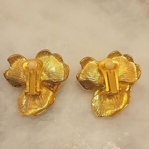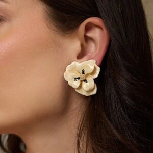 NEW Kenneth Jay Layne Beige Gold Crystal Pave Retro Clip on Flower Earrings Prep