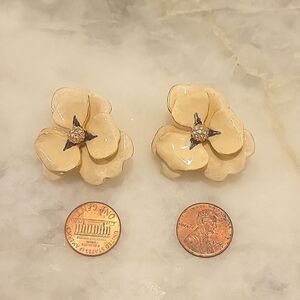 NEW Kenneth Jay Layne Beige Gold Crystal Pave Retro Coquette Flower Earrings