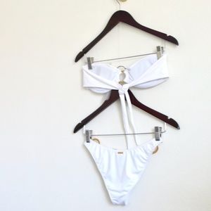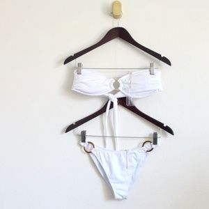 NEW! Kenny Flowers The Santorini Bikini Top and Bottom Gold Rings Set White SZ S