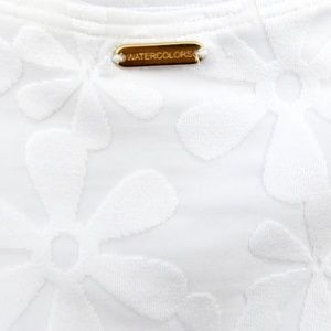 "A chic solid, with a floral texture twist. This White Floral Jacquard Sporty Bikini Bottom was designed to celebrate you.