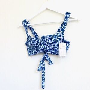 NEW! Kenny Flowers The Todos Santos V Underwire Bikini Top Floral Blue SZ S
