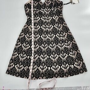 Kensie Black & Nude Lace V Neck Fit and Flare Cocktail Dress NWT. Such a cute and flirty neck line and back. This is in NWOT never worn condition. Perfect Y2K whimsigoth wednesday witchy fit flare classic classy baddie