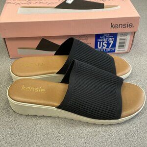 NEW Kensie Women's Size 7M Ellie Black Slide Wedge Sandals