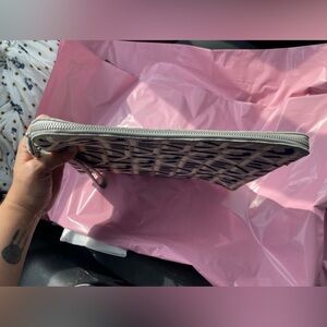NEW Kenzo Tri Color Printed Logo Knit Fabric Zipped Wristlet Pouch