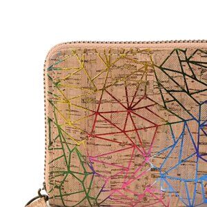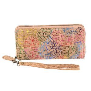NEW Khaki Geometric Design RFID Cork Wallet 7.5" W x 3.9"L x 1"D