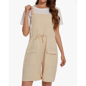 NEW Khaki Short Overalls Loose Adjustable Strap Romper Pockets M