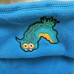 New w/box blue embroidered/patch fleece boot socks, size XL.