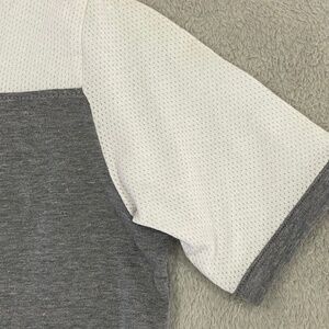 Super soft, lightweight grey & white short sleeve t-shirt with HARVARD graphic on the front. Mesh style accent with stripe collar (not actual mesh material- super soft cotton blend).