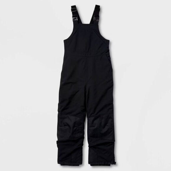 NEW! Kids' Waterproof Snow Ski Bib w/ Clips on Straps - All in Motion, Black