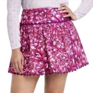 NEW Kika Vargas Women's Mum Floral Scallop Edge Wrap Mini Skirt w/ Pockets 6