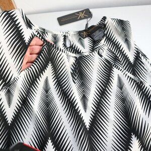 NEW Kim Kardashian Kollection Black/White Print Sleeveless Shirt Blouse Tank