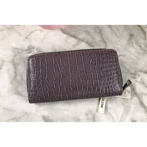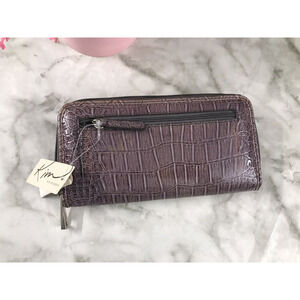 NEW Kim Rogers Purple Leather Clutch Wallet ZIPS Lined Credit Card Pockets 4"x8"